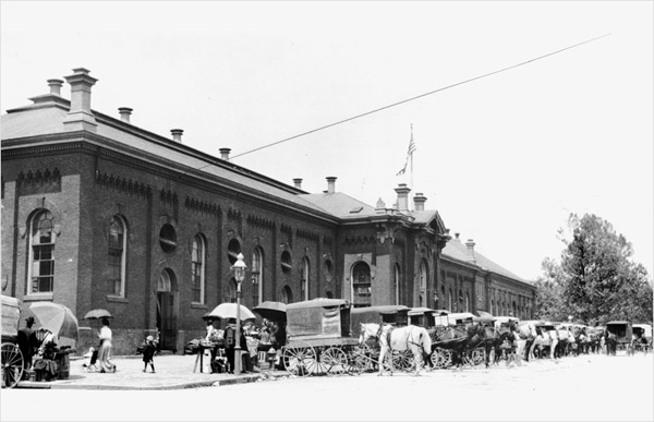 Well, not so modern, at least by the U.S. standards. Eastern Market was one of several markets that prospered in Washington in the 19th century. Designed by a German architect Adolf Cluss who emigrated from his native Heilbronn in 1848, Eastern Market was built in 1873 as a hallmark of a modern city undergoing a post-Civil War boom. A well-ventilated and naturally lit, spacious market replaced its dilapidated namesake established by Jefferson’s Presidential Proclamation in 1805 close to the Navy Yard on 6th between K and L streets. The current structure is the oldest still standing and continuously operating such market in the city. There used to be others. Ever wondered what was on the spot where the National Archives now stand? A bigger version of Eastern Market: Center Market built in 1871 as the largest market in America at the time, razed in 1931 to make space for the Archives — a place meant to preserve history. Sadly ironic.