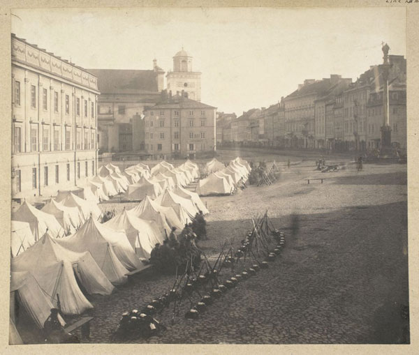 In this photo, taken shortly thereafter, Russian soldiers are camping on the square in front of the Royal Castle. If you’ve been to Warsaw, you surely recognize Zygmunt’s Column in the upper right hand corner.